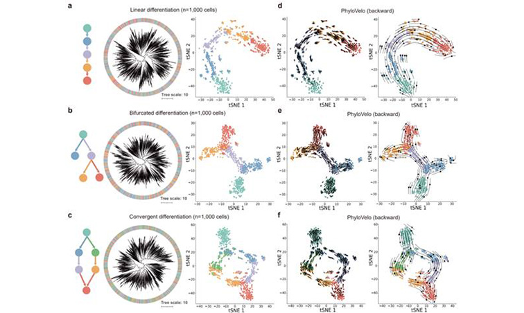 图2 | PhyloVelo准确推断仿真数据中的细胞分化轨迹