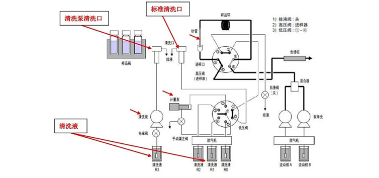 这主要得益于该进样器具有更多的洗针方法选择:首先,SIL-30AC提供四种不同的洗针液(分别标记为:R0、R1、R2、R3)进行待选,用户可以根据污染物、被测物的性质,针对性地在工作站上做出方便的选择,上述过程是自动进行的,不必麻烦地手动进行洗针液的更换。其次,SIL-30AC能通过设定,分别对针管内外壁、针管与进样针密封垫接触位置等可能造成交叉污染的地方进行清洗。