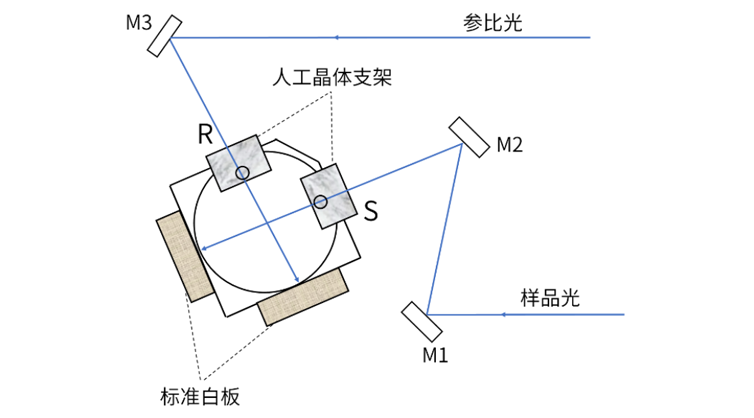 图4. 人工晶体支架在积分球附件上使用时的光路示意图