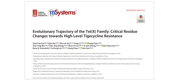 1.Cui C-Y, He Q, Jia Q-L, et al. 2021. Evolutionary trajectory of the Tet(X) family: critical residue changes towards high-level tigecycline resistance. mSystems 6:e00050-21. https://doi.org/10.1128/mSystems.00050-21.