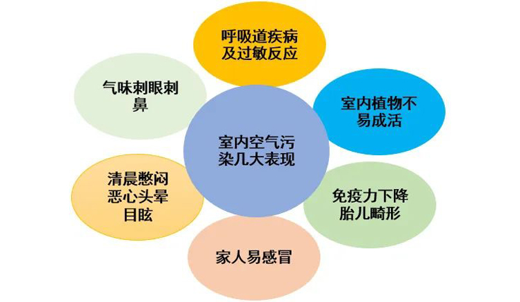 研究表明,即使室内空气中单个VOC含量较低,但多种VOCs的混合存在及其相互作用会造成危害强度增大,引起头晕、头痛、嗜睡、胸闷等症状,严重时可损伤肝脏和造血系统。