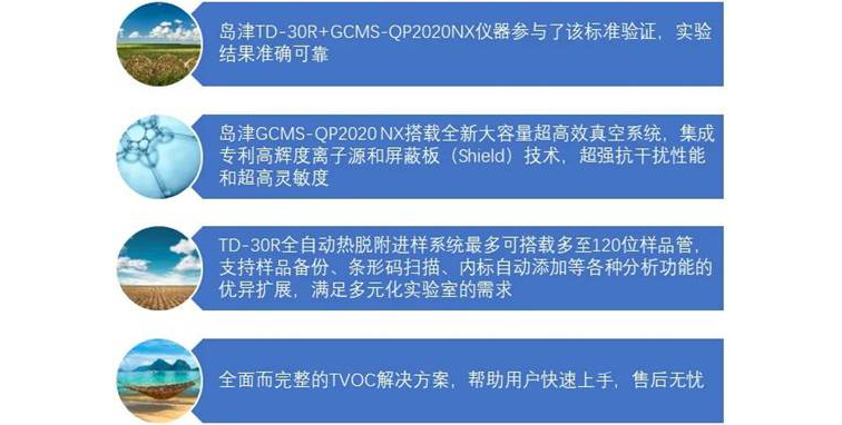 据不完全统计,人们每天约有80%的时间是在室内度过的,室内环境的空气质量与人体健康息息相关。新版GB/T 18883-2022《室内空气质量标准》替代GB/T 18883-2002,于2023年2月1日正式实施。新标准中的限值、检测方法、采样方法等方面均有不同程度的更新。新版标准的出炉会让室内空气质量标准变得更加严格、细致,为室内环境安全提供更有力的标准依据和技术支撑。岛津GCMS-QP2020 NX气相色谱-质谱联用仪结合TD-30R热脱附进样系统,参与了GB/T 18883-2022新标准室内空气中总挥发性有机物(TVOC)的方法验证。