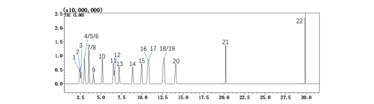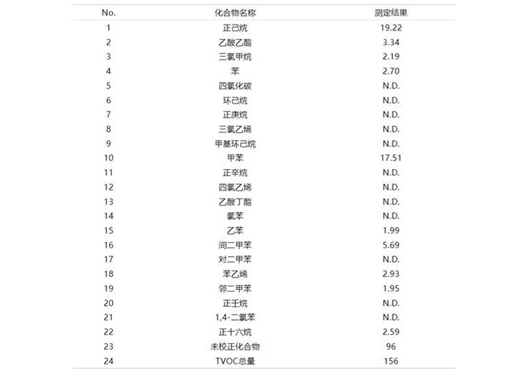 参照GB/T 18883-2022 《室内空气质量标准》中附录F: 室内空气中总挥发性有机物(TVOC)的测定,采用岛津GCMS-QP2020 NX气相色谱-质谱联用仪结合TD-30R热脱附进样系统,建立了室内空气中总挥发性有机物(TVOC)的测定方法。