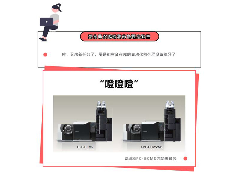 农药残留风险防控一直是食品安全的重头,但农残分析基质干扰大、农药种类多、灵敏度要求又高,传统离线的手工样品前处理方法工作量大、检测周期长、重复性也难以保证。对于日益繁重的检测任务来说,自动化的检测技术将逐步成为趋势。岛津将凝胶渗透色谱纯化前处理设备与气质联用仪进行在线联接(GPC-GCMS),实现样品的净化和浓缩自动化,一次完成多种成分同时分析,具有更高的回收率、灵敏度和重现性,不仅减少了实验人员的工作量,更大幅度提高了农残分析的速度。