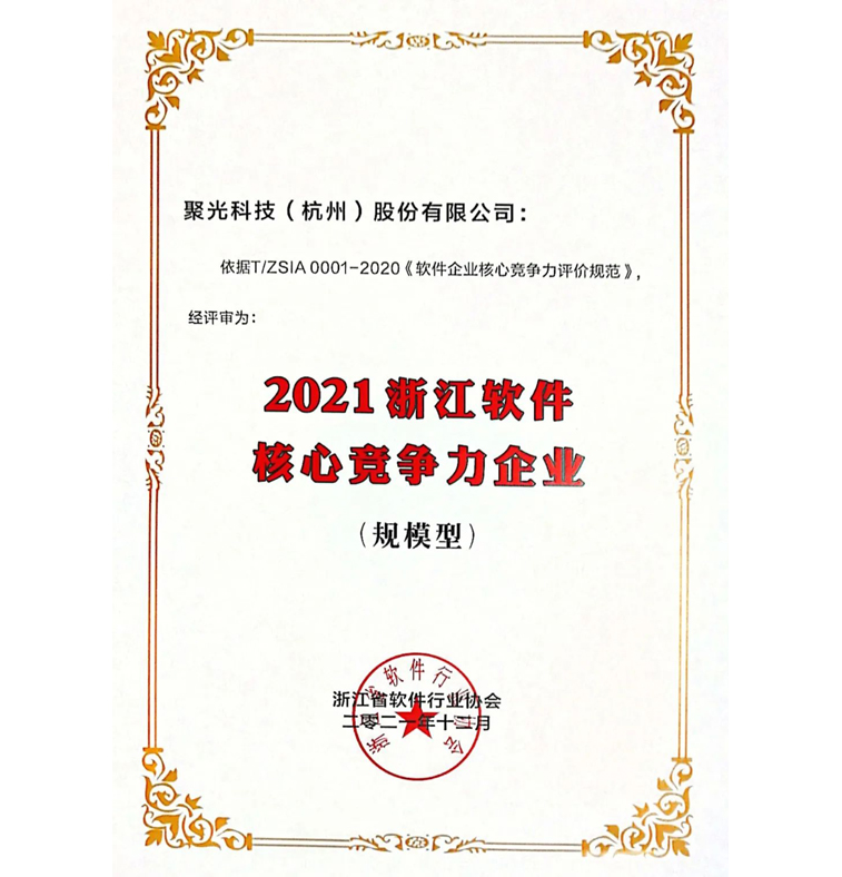 喜报 | 聚光科技获2021年浙江省软件企业核心竞争力企业荣誉