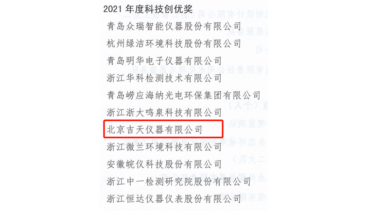 喜报 | 吉天仪器荣获浙江省环境监测协会2021年度科技创优奖