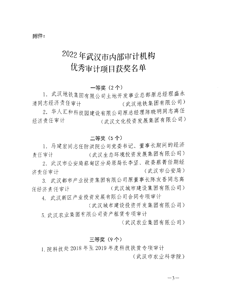 武汉市农业科学院科技扶贫审计项目获市优秀审计项目三等奖