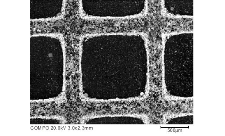 使用岛津电子探针分析了某GPF试样,电子图像观察显示,此GPF载体为蜂窝型空隙状陶瓷,壁面两侧有明显涂覆层(图1)。