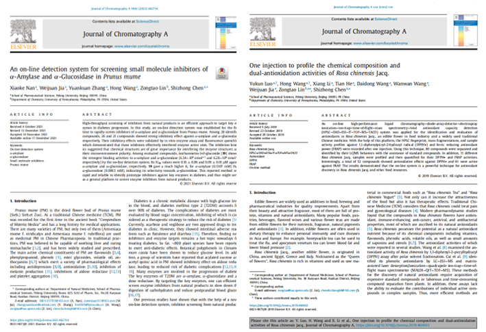 截至2022年2月,课题组充分利用岛津分析仪器,已在国内外各大期刊上发表了多篇文章。研究内容涵盖中药及天然产物的多个方向。