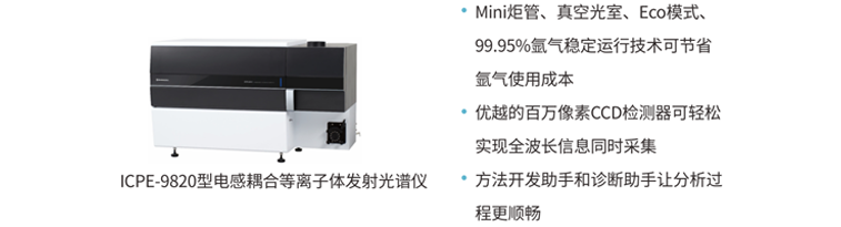 岛津电感耦合等离子体发射光谱仪(ICPE-9820)可轻松测定水泥窑协同处置污泥及污染土中重金属含量。ICPE-9820采用Mini炬管和全谱直读CCD检测器,实现高通量低成本的多元素同时分析,灵敏度高,分析速度快,从容应对GB/T 41058-2021《水泥窑协同处置污泥及污染土中重金属的检测方法》新标准要求。