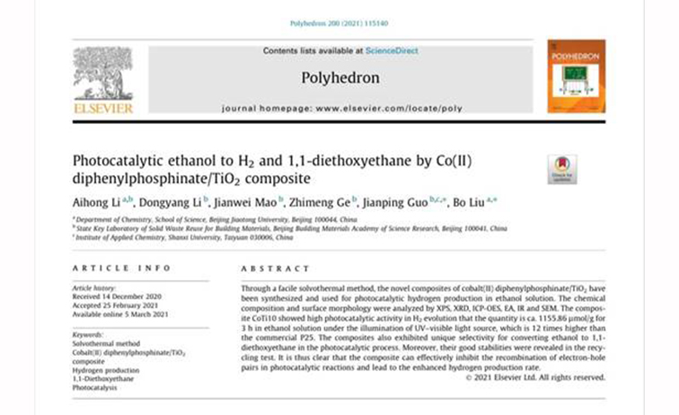 由于传统化石燃料等不可再生资源的广泛应用,环境污染和能源危机成为人类面临的两大问题。寻找解决能源短缺问题的有效途径已成为一个重要的研究课题。氢能被认为是一种清洁、可再生、环保的能源载体。在所有制氢方法中,光催化制氢是解决两大问题的有效方法之一。