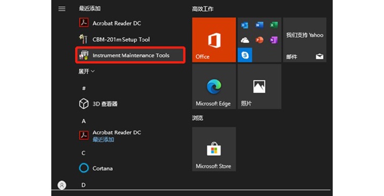 1、在电脑的【开始】菜单中,打开Instrument Maintenance Tools。