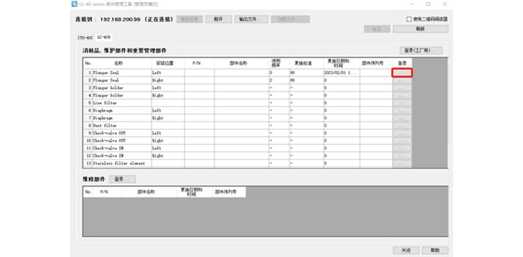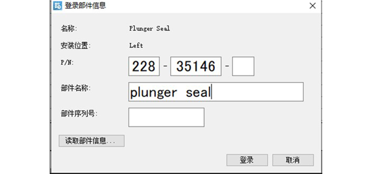 4、登录所更换的柱塞密封圈信息,输入它的部件号及部件名称,点击登录。