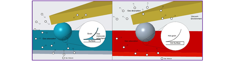 原子力显微镜(AFM)是一种观察微观表面形态的有力工具,还用于探测电、磁、范德华、粘附和化学相互作用。AFM是少数能够在微观尺度上测量颗粒粘附力的方法之一:通过将颗粒修饰至AFM探针针尖,可测量颗粒与界面接触时二者间的相互作用力,已广泛应用于微纳尺度颗粒与界面粘附特性研究中。受限于大气环境中气体吸附的干扰,传统AFM粘附力测量实际上得到的是颗粒-吸附气体-界面三者之间的粘附力,极大地限制了其在行星科学领域的应用,也阻碍我们正确认识无大气行星或小行星表面细粒风化物的粘附特性。在《An Improved Method of Adhesion Force Measurement by Atomic Force Microscopy (AFM) (一种改进的AFM测量粘附力的方法)》文章中,中国科学院地球化学研究所李雄耀团队提出了一种基于高真空AFM设备排除颗粒表面气体吸附物对其粘附特性影响的新技术(图2)。在保持颗粒物性不变的前提下,详细地探讨了环境压力与温度对颗粒表面吸附物的影响,在优化的温压条件(排除气体吸附物所需)下,模拟样品测量结果与理论模型预测值具有高度的一致性,表明该技术可准确测定无大气星体表面颗粒粘附力。该方法可应用于嫦娥五号月尘的粘附特性研究,为进一步认识月球表面尘埃环境提供关键数据支撑。