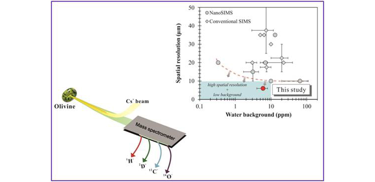 图9 高空间分辨率低本底的橄榄石水含量NanoSIMS分析技术