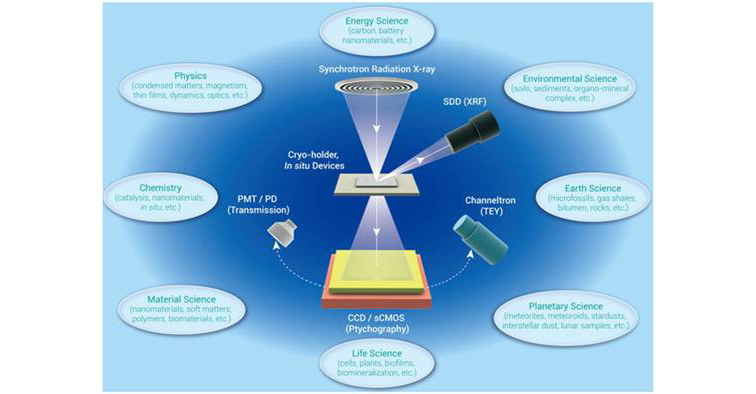 图10 同步辐射扫描透射X-射线显微镜工作原理及应用领域