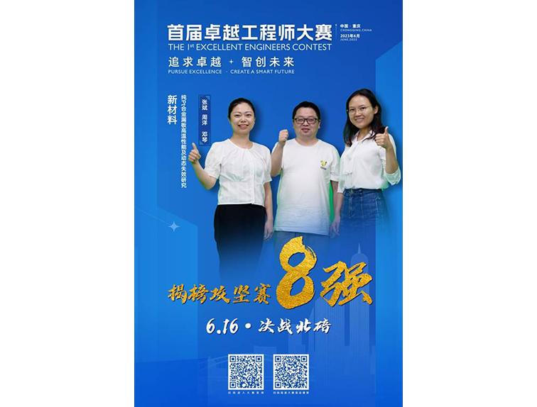 重庆大学分析测试中心张斌(项目负责人)、周洋(技术负责人)、邓琴领衔的“跨尺度多维度精准成像平台团队”(微纳结构分析室)揭榜重庆国际复合材料股份有限公司发布的攻坚项目“Pt合金漏板高温性能及动态失效研究”。此前该团队通过初赛、半决赛的出色表现从300多个团队中脱颖而出顺利晋级8强,并在揭榜攻坚赛决赛中赢得优胜奖。