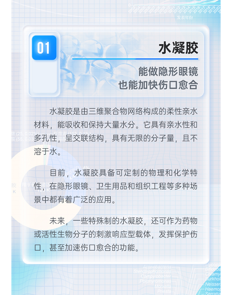7月26日,首届西湖未来论坛在杭州城西科创大走廊开幕。西湖大学未来产业研究中心发布了《最值得关注的十大生物健康材料》,具体包括:水凝胶、抗微生物材料、脂质纳米粒、外泌体、生物墨水、可编程生物材料、蛋白质材料、自愈合材料、生物电子材料,以及可持续生物材料。