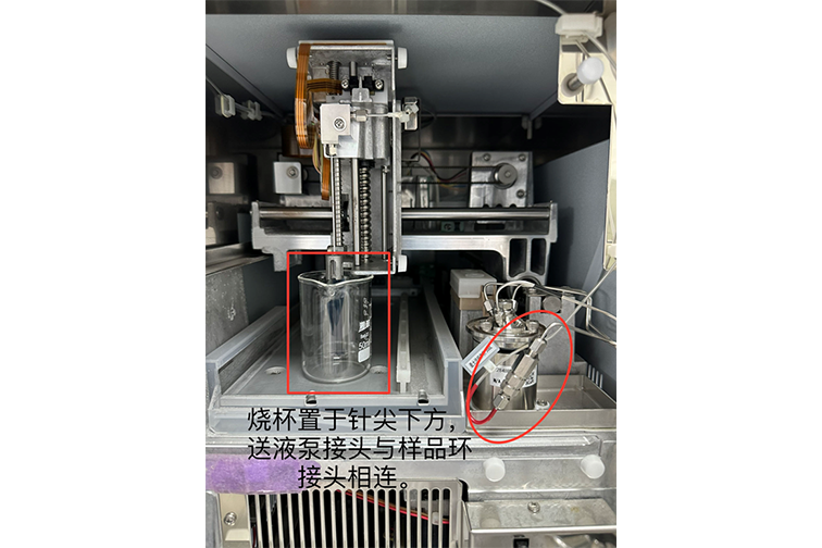 抽出样品盘,将小烧杯置于进样针下方,形成如图状态: