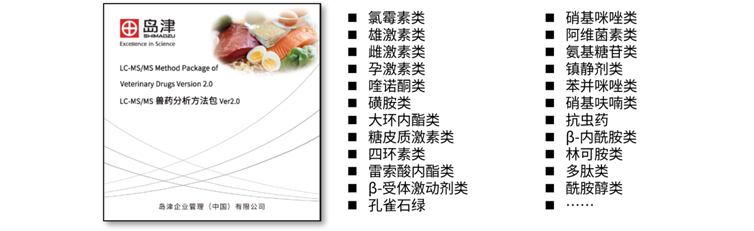 小伙伴们都知道动物源性食品种类多,基质复杂,而目前需要检测的兽药残留的种类和数量也在不断增加,很多目标化合物理化性质差异较大,我国的兽药残留标准中大多以分类检测为主,一个样本需多次前处理、多次检测,检测效率低,针对这些痛点,岛津除了应对标准外,也开发了多兽药同时检测的方法,一次处理即可完成多类别兽药的检测,同时简化了样品前处理,提高了检测效率。