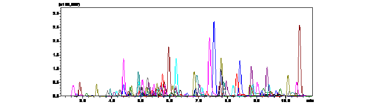 152种兽药混合标准品的MRM色谱图(1 ng/mL)