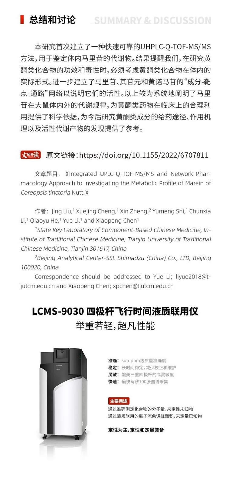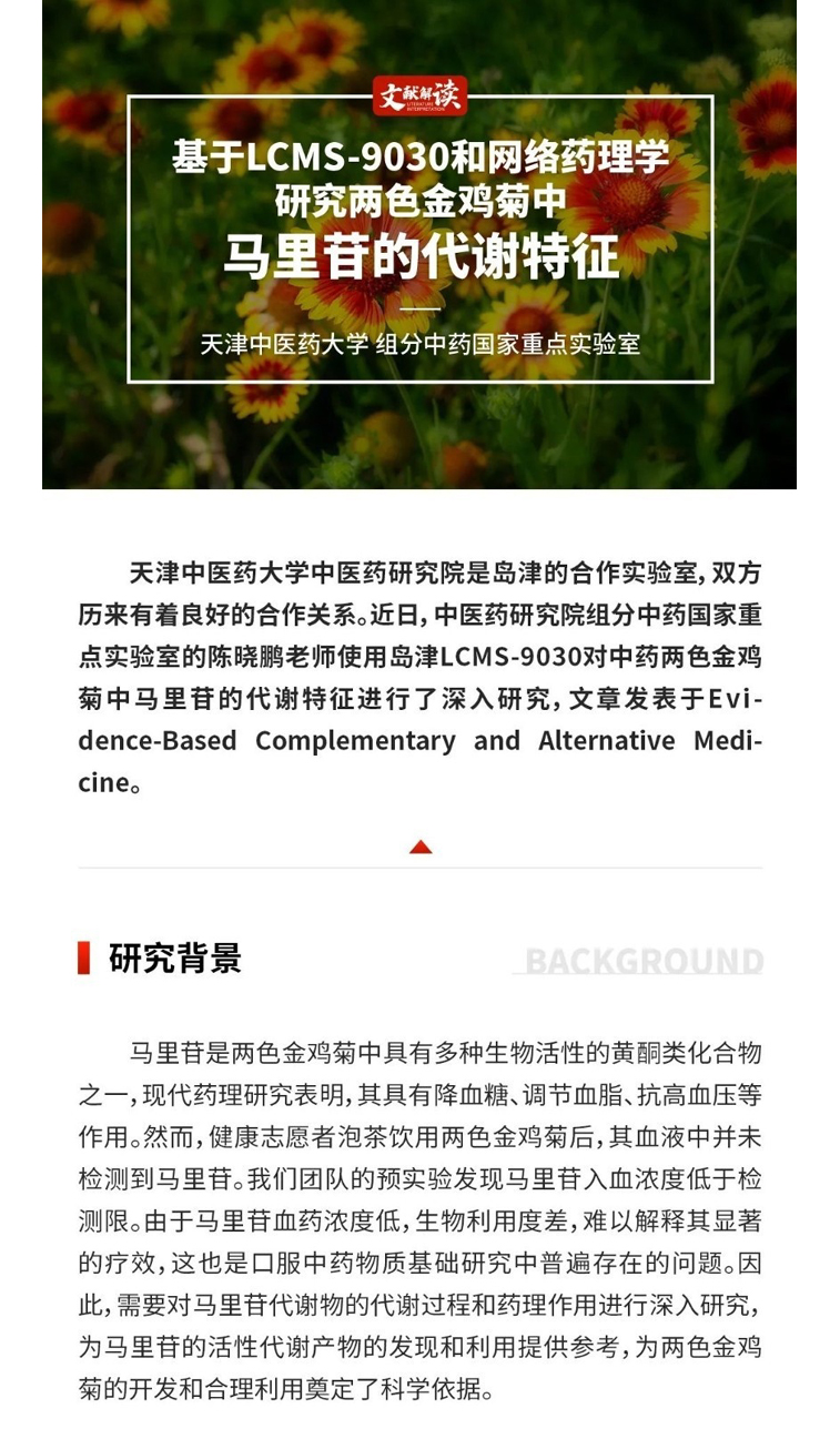 文献解读丨基于LCMS-9030和网络药理学研究两色金鸡菊中马里苷的代谢特征