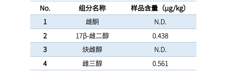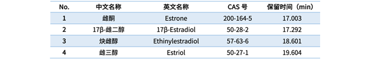 前处理方法:参照GB 31658.7-2021《食品安全国家标准 动物性食品中17β-雌二醇、雌三醇、炔雌醇和雌酮残留量的测定 气相色谱-质谱法》中的样品经酶解、提取、净化和衍生步骤进行处理。