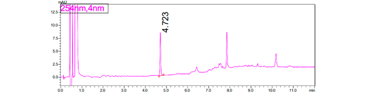 可疑爆炸物的 254 nm 下紫外色谱图4.72min 处有明显色谱峰,疑似未知爆炸物。