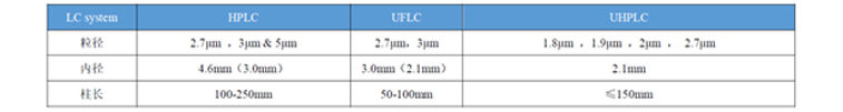 岛津多系列HPLC可以满足用户不同分析需求,选择和 LC 液相系统更为匹配的色谱柱可以获得更高的分离效率,如下表格总结了针对不同的液相系统配置如何选择色谱柱。