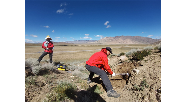 科研人员在西藏考察土壤(南京土壤所供图)