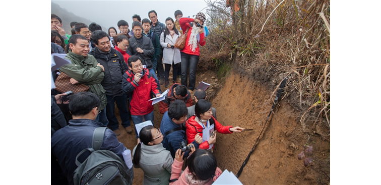 科研人员在野外考察土壤(南京土壤所供图)