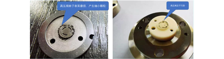 1、高压阀转子密封垫堵塞或者磨损(高压阀转子更换周期为2年)如下图:
