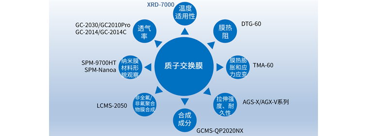 质子交换膜燃料电池的研究主要集中在催化剂、质子交换膜、电极、极板等的研究,各部分的研究表征技术对于电池的研究是必不可少的。岛津可以提供质子交换膜燃料电池研究中涉及的各种表征分析仪器及解决方案。