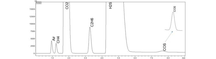 酸性气分析难点:常规方案硫化氢受乙烷和水的干扰较大,导致分离不好、结果不稳定;硫醇、硫醚等高沸点硫化物很难被洗脱导致分析时间很长。