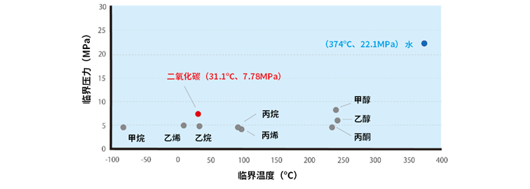 实际上,许多物质都存在超临界流体态,但为什么“我”特别钟爱超临界二氧化碳呢?这是因为目前的二氧化碳无毒、无臭、无公害,而且其临界温度相对较低(31.1℃),临界压力也不高(7.38MPa),获取容易,性价比非常高!