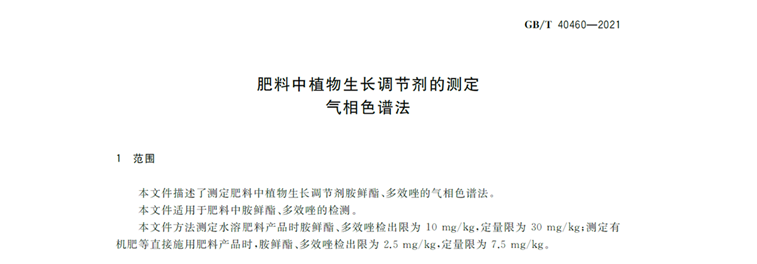 色谱检测方法新国标来啦——GB/T 40460-2021 肥料中植物生长调节剂的测定 气相色谱法