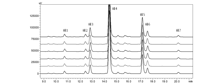 曲妥珠单抗酶解产物形成的众多色谱峰得到了高效分离,六次重复进样的重复性良好,方法稳定可靠,适用于肽图一致性评估。