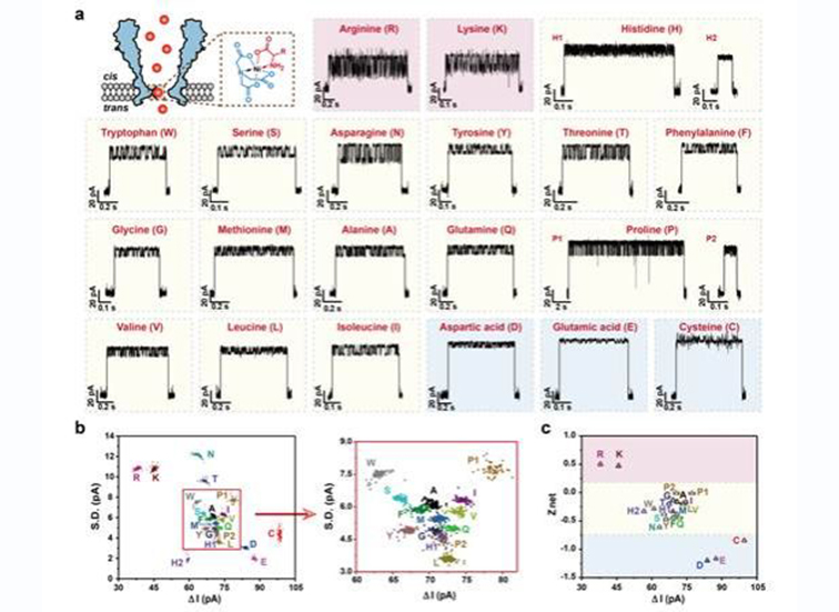 世界上第一个能完全分辨所有20种蛋白质氨基酸的纳米孔。在本篇工作中,作者亦采用了同种孔道,进而同时区