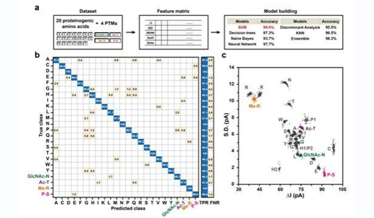 图3:机器学习辅助20种天然氨基酸及4种修饰氨基酸的识别
