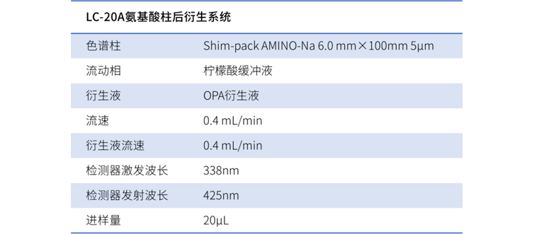 岛津提供OPA柱后衍生和单磺酰氯柱前衍生高效液相色谱法方案,可根据检测需求进行配置。