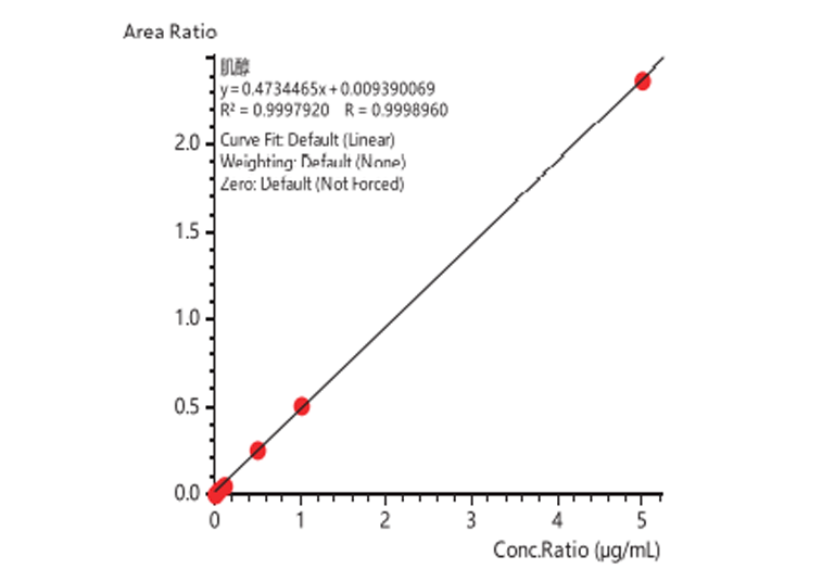 前处理过程:样品加水溶解均质,三氯甲烷提取涡旋离心后,取上清液过滤测定,内标法定量。